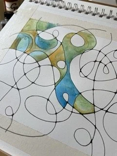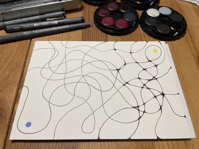 Before the meeting, to calm my nerves, I started a meditative drawing using simple lines. If you Google it or ask ChatGPT, it’s called Neurographic Art.